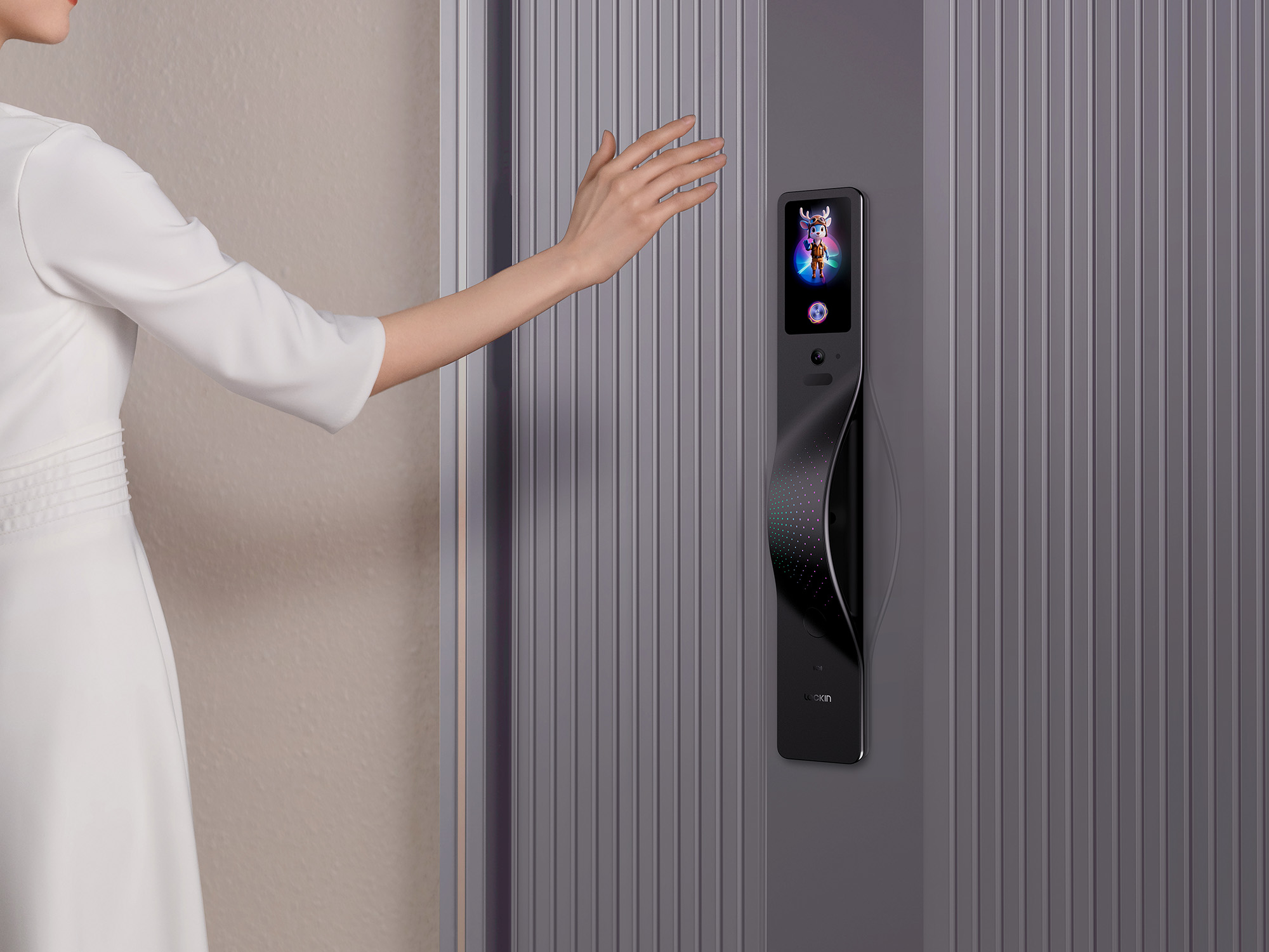 Introducing a truly AI-powered smart lock designed for users of all ages. It supports multiple access methods including palm vein, finger vein, password, app, and mechanical key, and is compatible with Matter. Unlocking takes just 0.17 seconds with 99.9% accuracy—delivering speed, precision, and security. The streamlined AG glass panel and ergonomic curved handle offer a sophisticated and user-friendly experience. A unique star-light array guides operation with flowing LED effects. Dual 5‑inch touchscreens show the Lockin AI persona for context‑aware interactions; the inner screen provides live view, two‑way video calls, weather, memos, and family notes, with Matter integration for device orchestration. If an elderly person with Alzheimer’s leaves alone, the system triggers alarms, voice notifications, emergency calls, and tracks departure distance. Wireless charging eliminates battery anxiety.